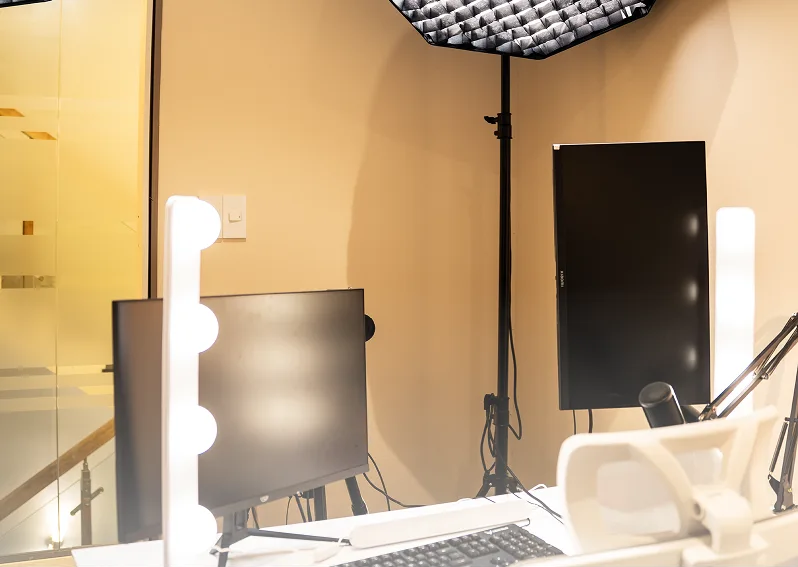 - Hỗ trợ cài đặt các hệ thống lọc âm (tune) và phần mềm Live Studio hiện đại nhất. - Thiết kế không gian làm việc với đèn live chuyên dụng, máy ảnh chất lượng cao và phong cách trang trí trending, phù hợp với định hướng hình ảnh và cá tính từng Nhà Sáng Tạo.